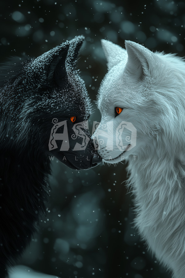 Tags: Black and White WolvesEmotional WildlifeFantasy AnimalsSymbolic CreaturesWinter SceneWolf Love