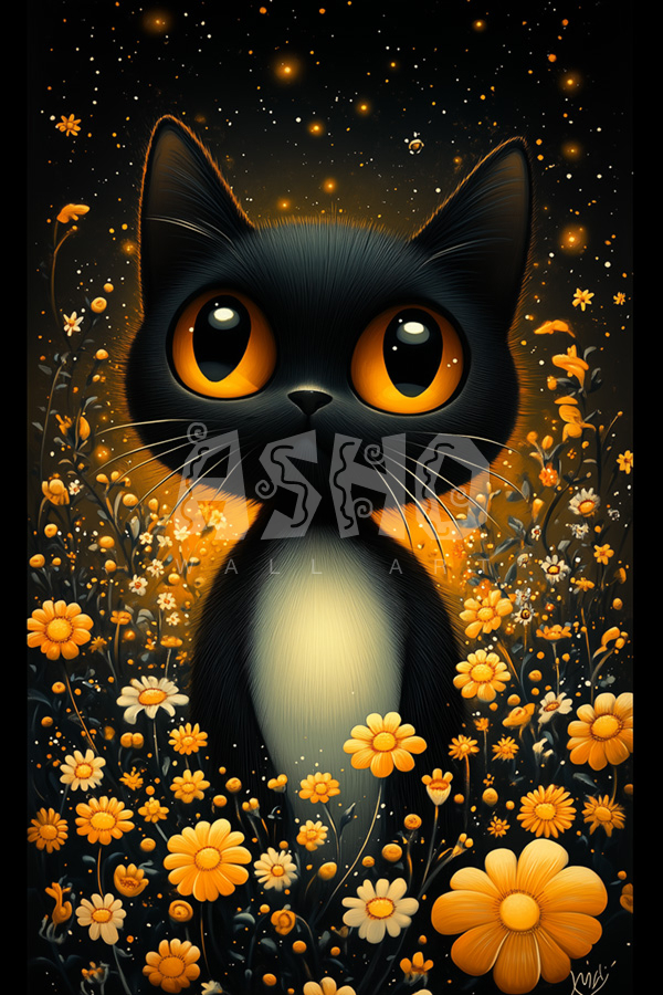 Tags: Black CatCute CatFlowersNature ArtStarry NightWhimsical