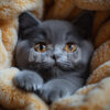 A heartwarming image of an adorable kitten cuddling with a plush teddy bear, wrapped in a soft pink blanket. The perfect depiction of comfort and cuteness.