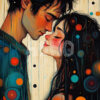 A peaceful expression in a dreamlike state. Floating colors create an ethereal effect. A blend of softness and bold abstraction.