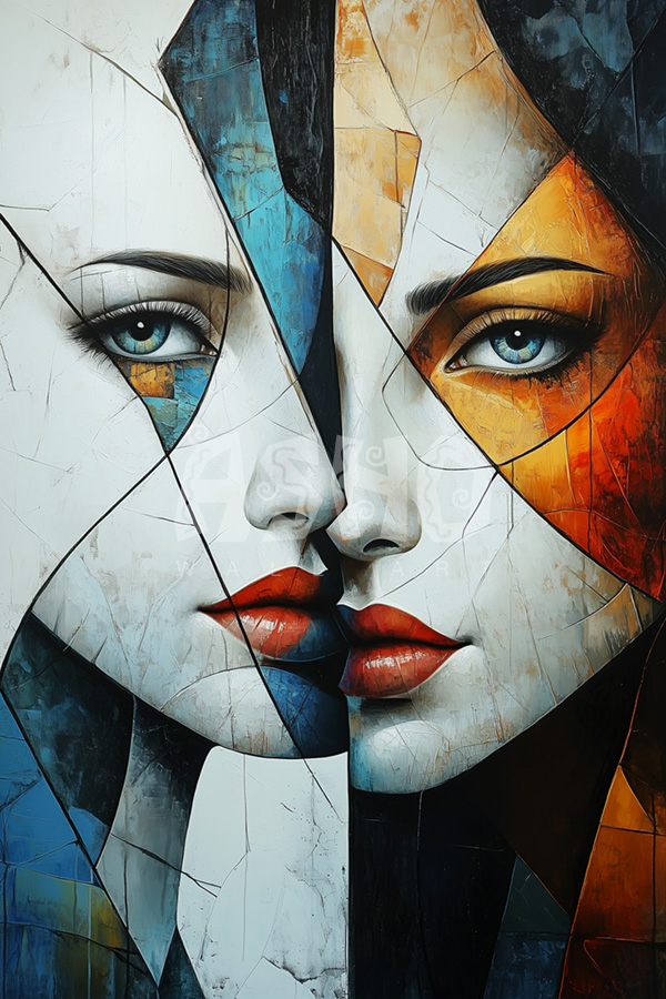 Tags: Abstract FacesBold Wall ArtColor ContrastDual PortraitFemale ExpressionModern Cubism