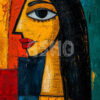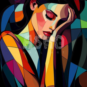 Textured abstract side profile of a woman in rich, bold color blocks with embossed surface effect. Printed on durable vinyl, mounted on thick MDF wood panel, resistant to water and dust.