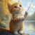 Charming orange kitten fishing peacefully by the lake in a warm autumn scene. Printed on durable vinyl, mounted on thick MDF wood panel, resistant to water and dust.