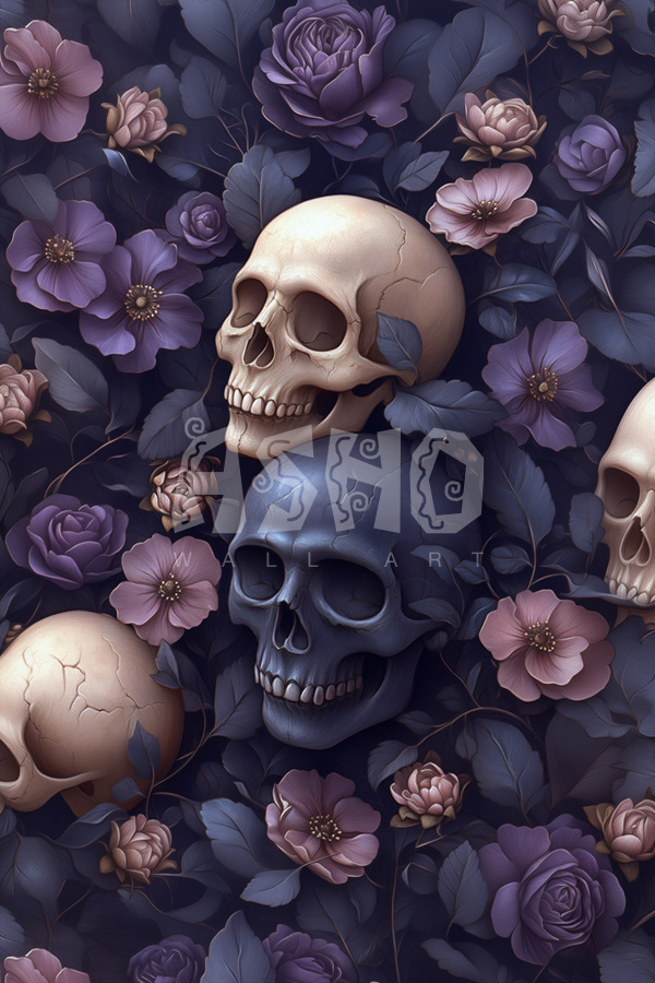 A hauntingly beautiful fusion of skulls and blooming roses in deep purples and blues. Surreal yet elegant—perfect for bold, moody interiors. Printed on durable vinyl and mounted on thick MDF, resistant to water and dust.