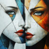 A warm and expressive abstract couple locked in a soft kiss, painted in bold cubist style with rich textures. Printed on vinyl and mounted on thick MDF wood—resistant to water and dust, perfect for modern spaces.